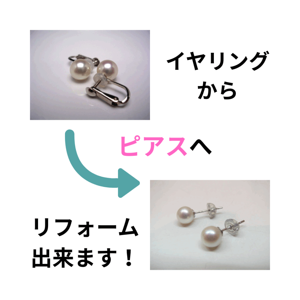 イヤリングからピアスへ、ピアスからイヤリングへリフォーム出来ます。
