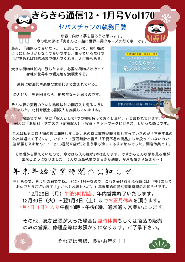 今年もあと1ヶ月ちょっとですね。クリスマスにお正月、楽しいイベントが続きます。