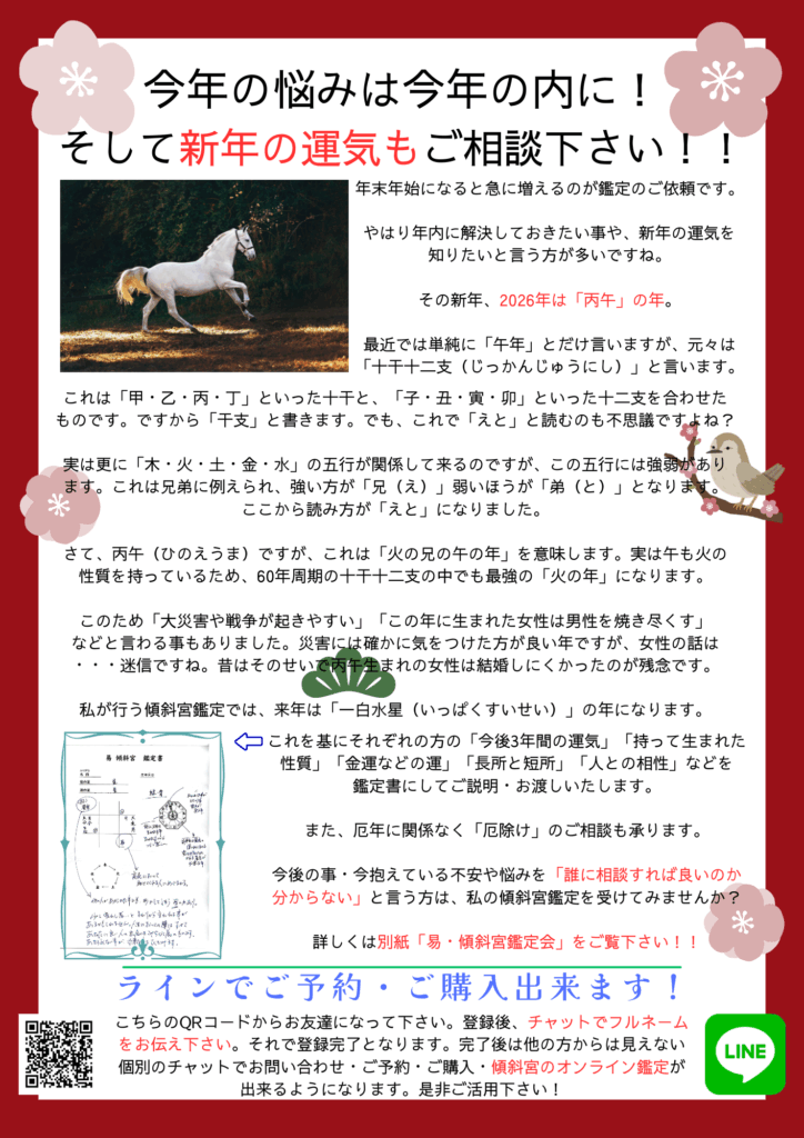 そして凶年を抜ける来年は「飛躍の年」、これまで努力して来た事が実る年です!