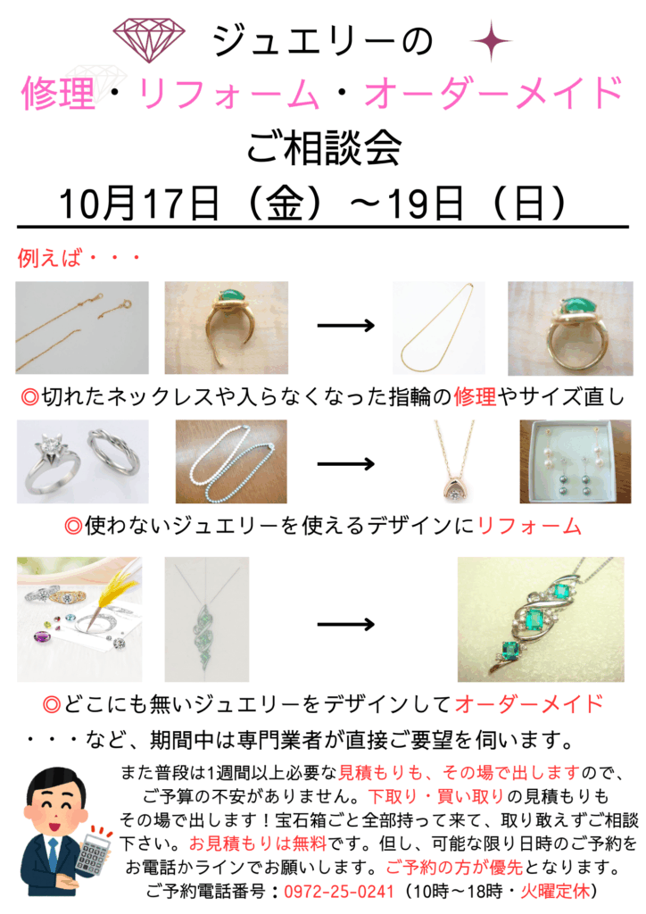 10月17日(金)~19日(日)はジュエリーリフォームフェア!