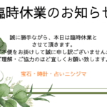 新年、明けましておめでとうございます! 宝石時計ニシジマは本日1月4日(日)より、通常通り10時~18時営業(火曜定休)となります。 本年もどうぞ宜しくお願い致します! 九州で唯一「GIA・GG(米国宝石学協会公認鑑定士 […]